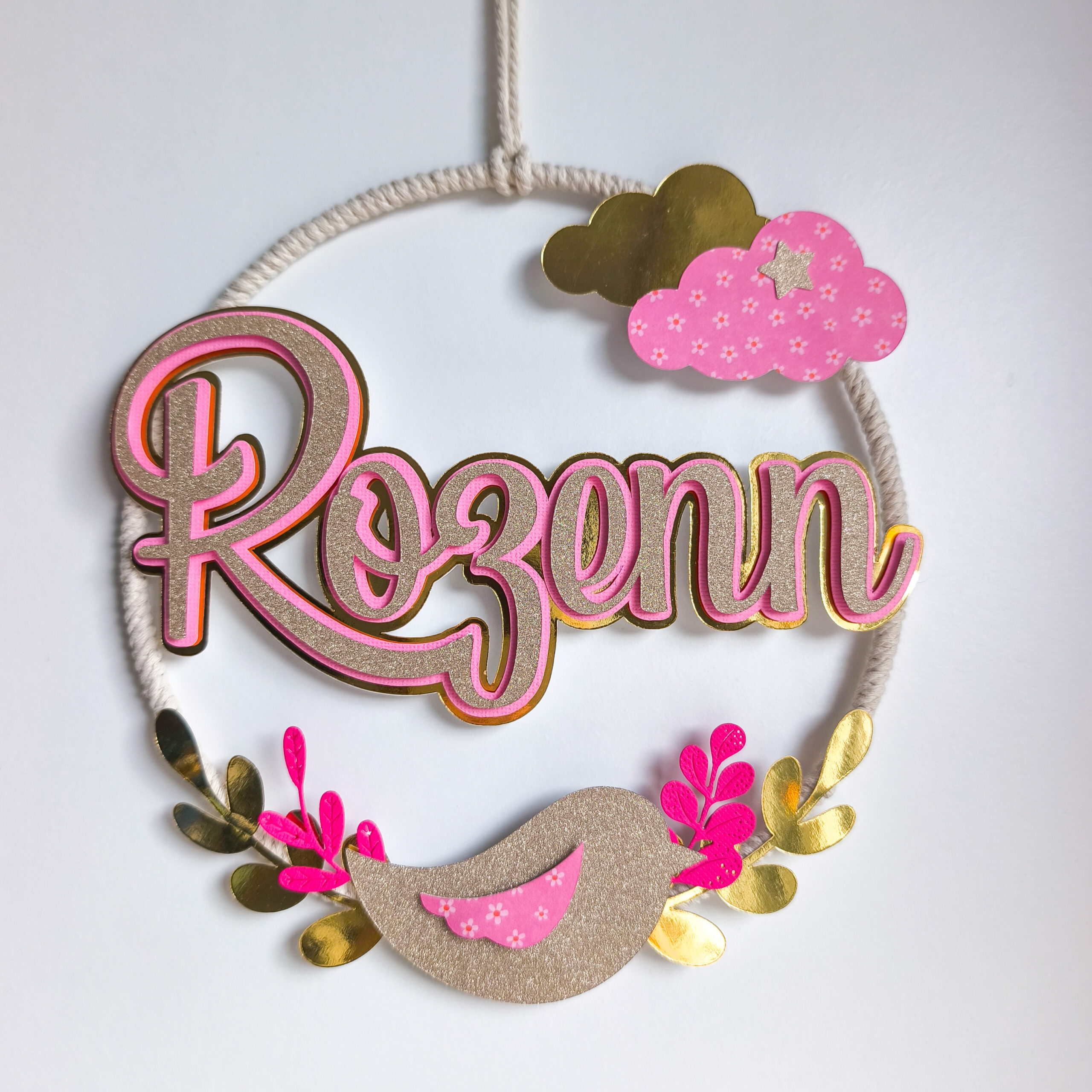 Cette décoration murale est une jolie idée de cadeau personnalisé pour la naissance d’un enfant.